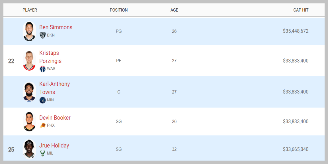 ★2022~2023시즌 NBA 선수 연봉 순위 TOP30